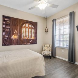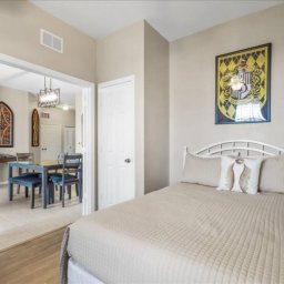 Welcome to your luxurious escape at our 3-bedroom, 2-bathroom Disney condo, perfectly located for an unforgettable vacation experience. Situated in a secure, gated community, this spacious condo offers access to resort-style amenities and breathtaking lake views. Just 15 minutes from Disney and close to Universal Studios, you’ll be at the heart of all the excitement. Whether you’re here to explore world-class theme parks or relax by the pool, this stylish condo is designed for your ultimate comfort and enjoyment. Step into this beautifully appointed condo, where modern comforts and family-friendly design come together for an ideal getaway. With plenty of space to relax, entertain, and recharge, it’s the perfect home base for your Orlando adventures. LIVING ROOM Unwind in the spacious living area, where cozy seating and a welcoming atmosphere make it the perfect place to relax after a day of exploration. Catch your favorite shows or movies on the large flat-screen TV, or simply enjoy the views from the windows. • Comfortable sofas and seating • Large flat-screen TV for entertainment • Bright, airy atmosphere with plenty of natural light KITCHEN AND DINING Channel your inner chef in the fully equipped kitchen, complete with modern appliances and everything you need to create home-cooked meals or quick snacks. Enjoy meals together at the dining table, with ample seating for your group. • Fully equipped kitchen with stove, oven, microwave, fridge, and dishwasher • Essential kitchenware: cookware, utensils, and glassware • Dining table with seating for 6 BEDROOMS Each bedroom is designed for comfort and relaxation, offering plenty of space for everyone in your group. With premium linens and cozy furnishings, you’ll be ready to rest and recharge for the next day of adventure. • Master bedroom: King-size bed with en-suite bathroom • Second bedroom: Queen-size bed • Third bedroom: Two twin beds, perfect for kids or additional guests • Each room is equipped with ample closet space and storage RESORT AMENITIES Take advantage of the fantastic amenities available at the resort, including a large pool, jacuzzi, water park, and more. There’s something for everyone, whether you want to relax, play, or get active. • Resort-style pool and jacuzzi • Water park and splash zone for the kids • Cinema, arcade, and mini-golf • Fully equipped gym and sports courts • Access to dining, shopping, and entertainment nearby ADDITIONAL AMENITIES • Stunning lake views from the condo • 24/7 security for peace of mind • Free parking within the gated community • High-speed Wi-Fi to stay connected Guest access You’ll have exclusive access to the entire condo, including all of the resort’s incredible amenities. Enjoy the pool, gym, and more, just steps away from your front door. Other things to note • This property is part of a secure, gated community with 24/7 security. • Perfectly located with easy access to Disney, Universal Studios, shopping, dining, and more. • Ideal for families or groups up to 8 people looking to experience the magic of Orlando in style. Book your stay now and create unforgettable memories in our beautiful Disney condo—your perfect home away from home!