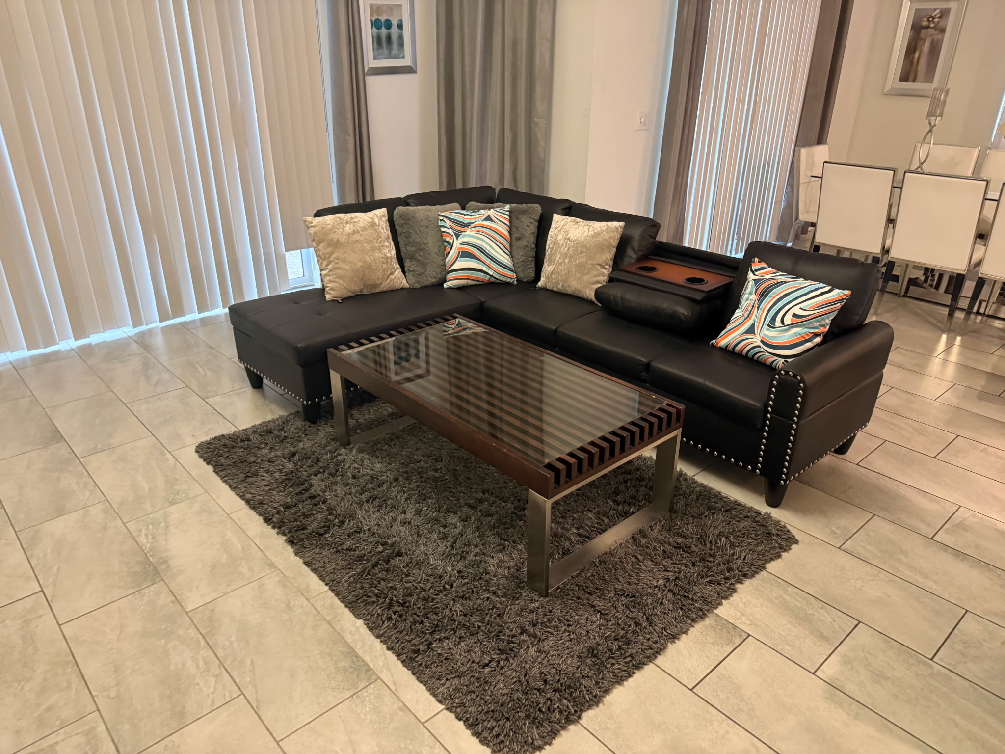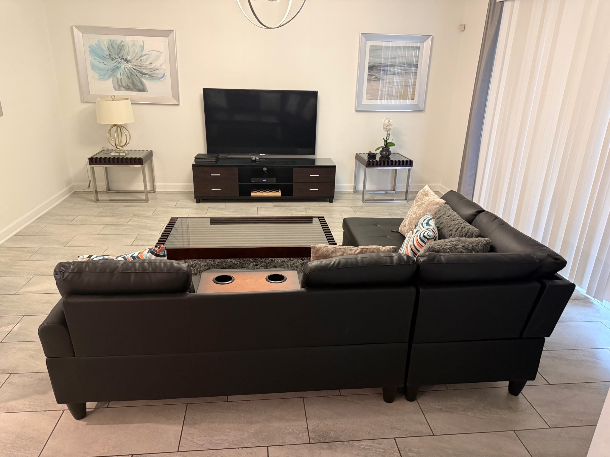 Welcome to your ultimate vacation retreat in the heart of ChampionsGate Resort! Perfectly designed for families and groups, this spacious villa offers everything you need for a memorable getaway—plenty of space, private amenities, and easy access to Orlando’s top attractions. Whether you’re here to relax, explore, or simply enjoy quality time together, this home is ready to make your stay unforgettable! Step into this thoughtfully designed villa, where modern comforts meet family-friendly features. With plenty of space to unwind, entertain, and enjoy, this home is perfect for your dream vacation. LIVING ROOM Unwind in the cozy living area, ideal for movie nights or casual chats after a day of fun. • Large sofa with pillows • Flat-screen TV • Center coffee table KITCHEN AND DINING Cook and dine with ease in the fully equipped kitchen, complete with everything you need for home-cooked meals. • Modern appliances: microwave, stove, oven, fridge/freezer, dishwasher • Essentials: cookware, glassware, and silverware • Dining table with seating for 10 BEDROOMS Bedroom 1 & Bedroom 2: Kids’ Rooms Delight your little ones with whimsical themed décor that sparks imagination. • Themed beds • Flat-screen TV • Bedside table Bedroom 3, Bedroom 4, and Bedroom 5 Stylishly furnished spaces for restful nights. • Queen-size beds with premium linens • Two bedside tables with lamps • Mirrors • Flat-screen TVs Main Bedroom A serene retreat with luxurious touches. • King-size bed with premium linens • En-suite bathroom with dual sinks and a walk-in shower • Flat-screen TV BATHROOMS Designed with convenience and comfort in mind, the villa offers 4 full bathrooms. Bathroom 1 • Toilet area • Bathtub Bathroom 2 • Glass shower area • Large vanity Bathroom 3 • Large vanity • Bathtub • Toilet seat Bathroom 4 • Glass shower area • Large vanity • Bathtub LAUNDRY AREA Keep things fresh and clean with an in-house laundry setup. • Washer • Dryer Game Room: • Fooseball • Pool Table • Spiderman Themed Mural Upstairs Family Room • Comfy Sectional Sofa • Large Screen TV • Extra Space to spread out OUTDOOR SPACE Make the most of Florida’s sunshine in your private outdoor oasis. • Private pool (heating available for a fee) • Table with seating for 6 • Extended deck with loungers and two seating areas ADDITIONAL AMENITIES • Dedicated games room with a pool table and foosball • High-speed Wi-Fi • Strollers for families with little ones • Bonus upstairs seating area with TV Guest access The entire villa is yours to enjoy, including all private and resort amenities. Other things to note Enjoy ChampionsGate Resort's incredible amenities: a lazy river, water slides, a massive pool, a clubhouse with dining options, tennis courts, and kids’ play areas. Conveniently located just 20 minutes from Disney and 30 minutes from Universal Studios, this villa offers easy access to local stores and restaurants, just a 5-minute drive away. Book your stay today and create lasting memories in this family-friendly paradise!