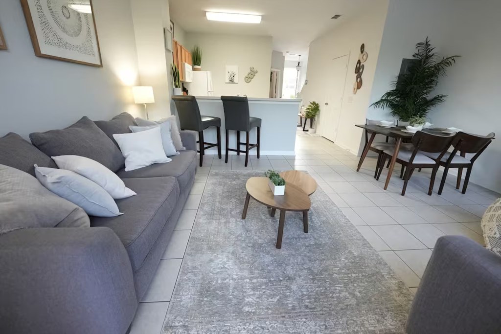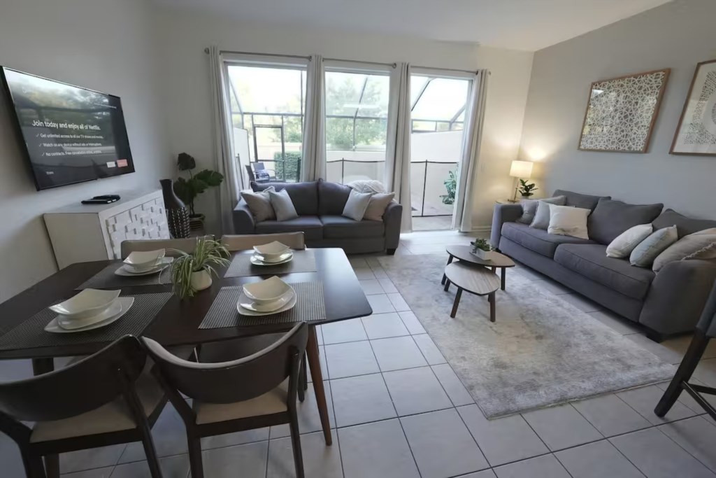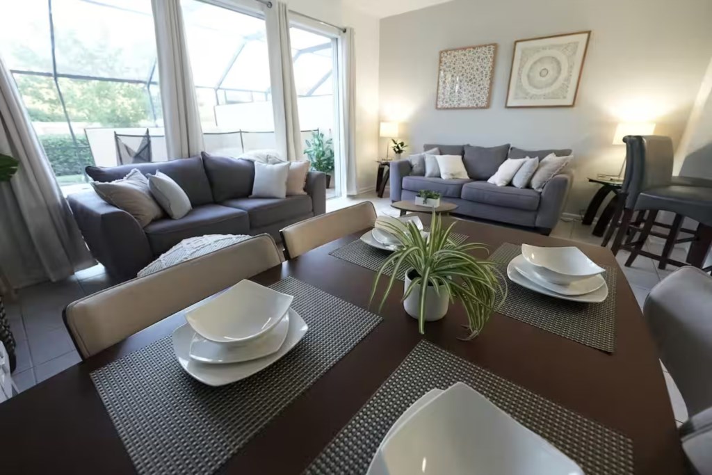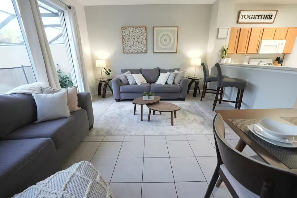 Everything you need for your Disney Vacation! Spacious townhouse with splash pool close to everything in the best resort. Windsor Hills is located just 3 miles from Disney World, only 15 miles from Universal Orlando Resort, close to Sea World, Gatorland, and more! Resort Amenities includes a FREE waterpark with dueling waterslides, pool, hot tub, sundry shop, arcade, gym, walking trails, RV parking in this 24/7 manned gated resort. Everything you need for your amazing Orlando vacation! This townhome boasts three beautifully decorated bedrooms each with their own bathroom. A fully equipped kitchen and living area overlook your own private plunge pool. The home has a washer/dryer for your convenience. A perfect place to relax during your Disney stay! This townhouse has 3 bedrooms and 3 full bathrooms. One bedroom and bathroom is located downstairs. Fully kitchen, dining area and a nice comfortable living space with sofa bed. Relax in the splash pool after a long day at the parks! Washer and dryer inside the home. Guest access Windsor Hills is an amazing resort and the closest community to Disney World. This is a safe 24/7 manned gated resort. As our guest, you will have access to: -New FREE waterpark including dueling waterslides, amazing lagoon-style pool, and large hot tub -Clubhouse -Welcome center and cyber cafe -Video arcade/game room -Movie rental -ATM -Movie theater -Fitness center -Convenience store & grill (burgers sandwiches and more) -Tennis, volleyball and basketball courts, ping pong, and tot lot -Playground -Grilling areas -Walking trails -RV parking available -Parking is free. Home is walking distance from the waterpark and clubhouse.